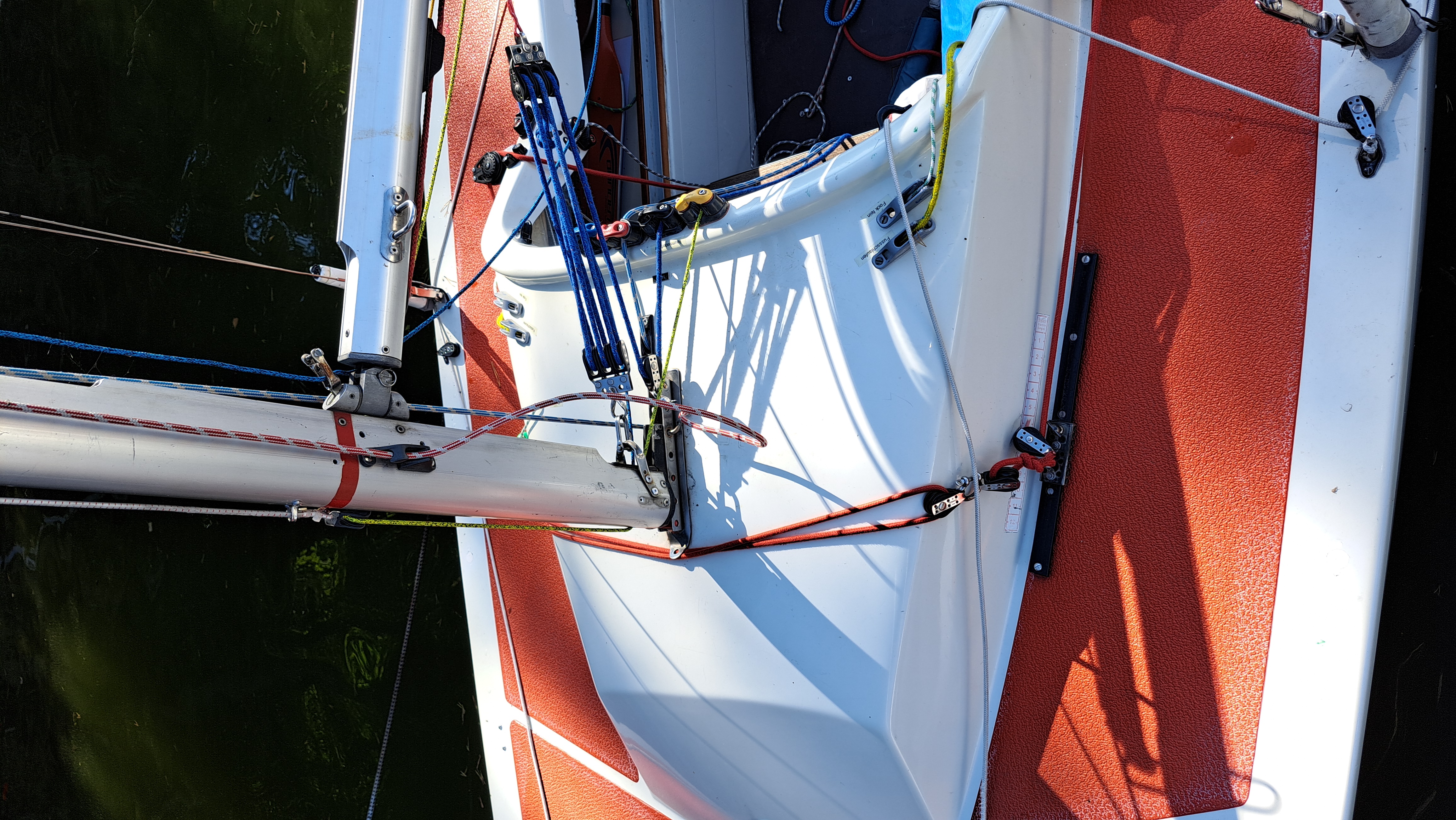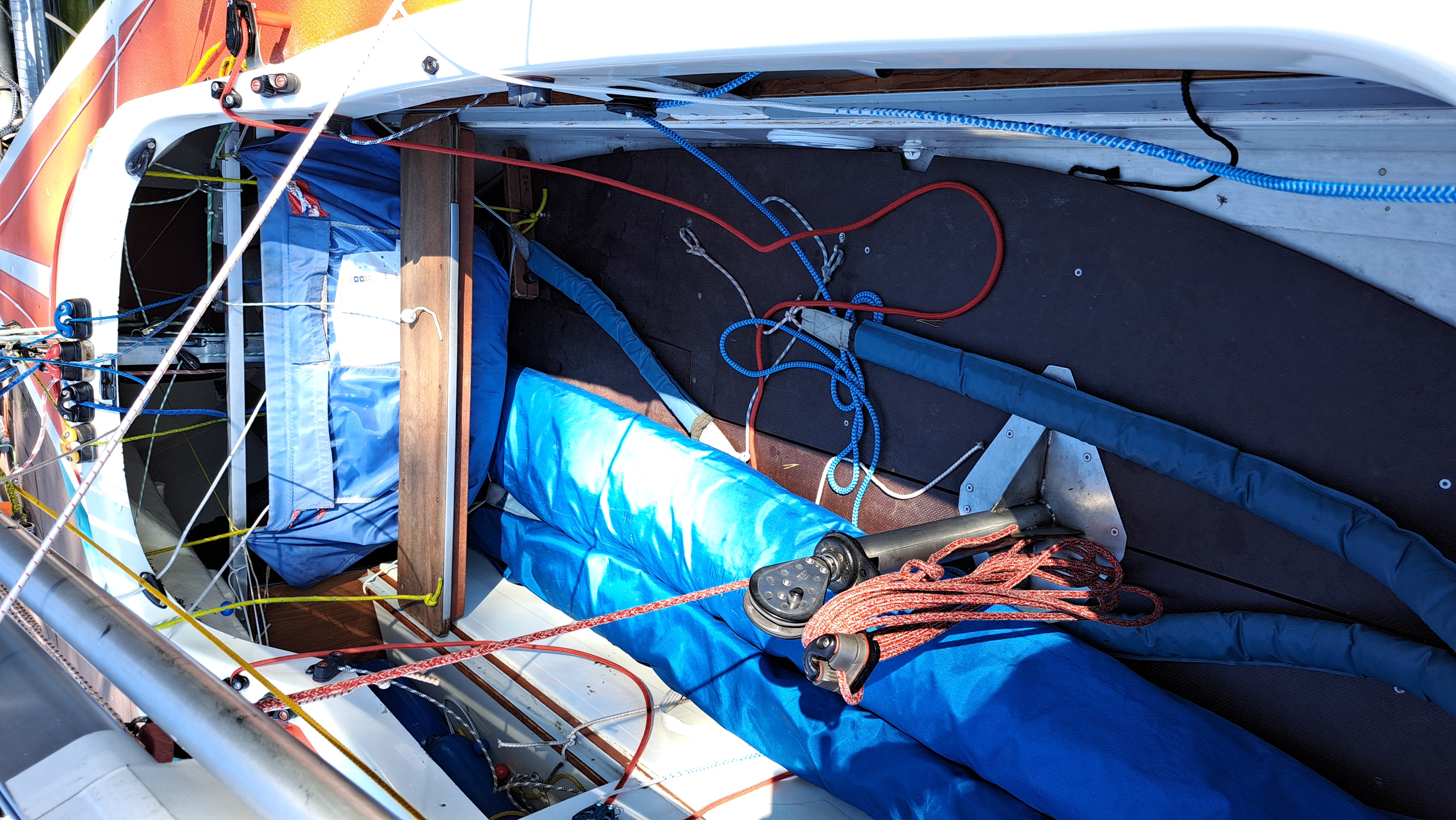 Laufendes Gut, Blöcke und Umlenkrollen sind gegen neue, hochwertige ausgetauscht worden.